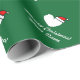 Personalized Merry Christmas Santa heart wrapping paper. Cute Holiday design for romantic couples. Personalizable with custom name and greeting. Green and red colors. Background color is customizable.