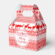 Customizable Merry Christmas gable favor box. Your name and message on beautiful Lapland style pattern in red and white background. Available in other styles. Matching personalized Christmas Paper napkin, paper plates and more...