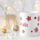 With a little vintage inspiration this cute personalized Christmas mug with its red and white snowflakes is perfect for the holiday season.