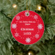 Change the background color of this ornament to any color you prefer. Simple but classy collectible tree trim has a border of snowflakes. The font style, and size can also be changed. Other ideas - you could put a couples names and add the number of the Christmas, for example, Lisa and Michael, First Christmas. The back of this ornament has been left blank so it can be further personalized if desired.