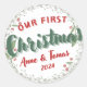 ABOUT OUR Personalized Christmas Sticker Celebrate your first Christmas together with this beautiful custom sticker "Our First Christmas" from 2024. Designed with an elegant motif of leaf crown and Christmas berries, this sticker includes the custom names of the couple and the year, making it a timeless memory you can treasure for many years. Personalize your unique sticker with the names you want and mark the beginning of a special tradition for your family. Stickers that hit you. Personalize them on occasion! You can use them for a special shipment, for child crafts or other artistic projects. These stickers have myriad uses! Personalize it with your own designs, patterns, images and text. Dimensions: Available in 2 sizes: Large: 3" diameter, 6 stickers per sheet. Small: 1.5" diameter, 20 stickers per sheet. Acid-free paper prints High quality, complete and borderless printing. scratch resistant; easy to paste and take off Available on matte or bright finish Choose from 7 different shapes Thank you for trusting us