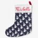 Personalized Christmas stocking with angel pattern. Add custom name or monogram letters. Traditional design with Holiday symbol. Cute monogrammed xmas party decorations and accessories for the Holiday season. Change the quantity to get the cheapest price per sock. Elegant script typography. Suitable for men, women and kids. Rustic double sided x-mas stockings. Blue and red colors.