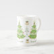 Personalized Christmas Tree & Bells Bone China Mug featuring original design by artist and illustrator Sandra Moore. Ideal gift for anyone who loves Christmas! Personalize with name and message of your choice. Information about the work of Sandra Moore can be found at www.sandramoore.co.uk