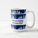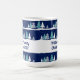 Beautiful midnight blue sky with Christmas fir trees decorate this pretty, personalized family holiday mug. Snow lines the lovely forest and white snowflakes sprinkle down in the night air. Great keepsake gifts to commemorate a family reunion.