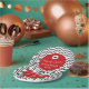 This graduation party plate features black zigzags as the background and a red circle in the center. Popular hand lettered style text reads: Class of 2017 with custom text for the graduate's name and school. This paper plate is accented with a graduation hat above the text. The red circle color can be changed to any available color by choosing the customize it button.