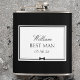 Toast to the best man in style with this sleek, personalized flask. Featuring a classic black-and-white design, this flask can be customized with his name, role, and the wedding date, making it a unique and thoughtful gift. This flask is perfect for pre-wedding celebrations or as a lasting keepsake, adding a touch of elegance to every special moment. Its timeless aesthetic fits seamlessly with any wedding theme, ensuring your best man feels celebrated in the most stylish way!