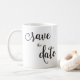 Personalized classic white Save The Date mug with customizable text - you can add Bride's and Groom's name and wedding date