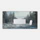 Bring the serenity of this view from a clearing in the snow into your workspace with this exquisite desk mat. Personalize it with a name printed on the lower right corner. This mat features a view of clearing in a snow covered forest where absolute silence reins with a high-quality print from a high definition graphic. It provides a smooth and comfortable surface for your work for your laptop, keyboard and mouse. It can also transform your workbench with a stylish and elegant touch. Perfectly suited for all creators, artists, writers and anyone inspired.