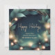Elegant corporate Holiday card. The modern design features a festive wreath and lights on a dark green background. Use the design tools to customize the text, font and color. Easily add your company logo. Also available as digital download.
