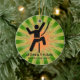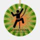 Climber's Personalized Ornament Christmas 20XX. A climber in position against a green and orange starburst background. All text customizable, front and back!