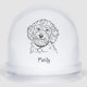 Celebrate the season with this adorable dog snow globe! This design includes a black and white Cockapoo dog and a place to add a name below.