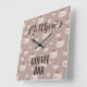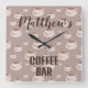 Perfect for your kitchen coffee making area this square wall clock, with coffee beans and cups are customized with your name.