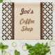 A cream and black pattern and a coffee cup give this cute coffee shop kitchen towel classic style. Personalize this towel by changing the name, font style, font size, etc...to suit your needs. The design is from original art.