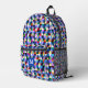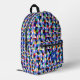 This allover print backpack features a vibrant geometric pattern that is perfect for school children, ensuring their essentials can be carried with style and comfort. Designed for practicality, this backpack features adjustable padded shoulder straps, a spacious interior, a mesh side pocket, and an internal identification label. It offers ample storage space for books, snacks, and other essentials without compromising on its lightweight structure. Use the text template provided to include your child’s initial on the backpack.