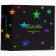 Pretty black binder, with rainbow colored stars. Personalize by adding your name to the front and add binder title to the spine.