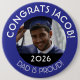 Show your favorite graduate how proud you are by wearing a personalized graduation button! This button is easy to customize with the graduate's name, photo and graduation year. All text and the photo is simple to update to your liking.