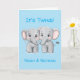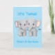 Celebrate the arrival of twin baby boys with this adorable and customizable greeting card! The front features two sweet little elephants and the message "It's Twins", with space to personalize the card with the twins' names.