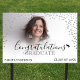 This elegant graduation yard sign, features a graduation photo, with a white overlay, some scattered silver effect glitter, with a congratulations template that can be easily edited and personalized. The font styles, sizes and colors can be changed easily by clicking on the customize further link after personalizing.