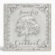 An antique silver colored personalized cookbook featuring a family tree design. Art by Amelia Carrie