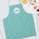 Custom cooking apron featuring a fresh teal background that can be changed to any color, a vintage polka dot pattern, your initial, name, and a sweet baking quote.