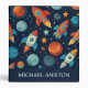 Personalized Cool Rocket Ship Space and Planets 3 Ring Binder