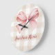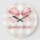Personalized Coquette Bow and Beige Gingham Large Clock