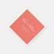 Elegant personalized coral Mr. and Mrs. wedding paper napkins with modern script. Easily personalize online. Matching items available to complement these minimalist coral wedding napkins. For custom requests, please contact us via Zazzle chat.