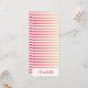 This personalized bookmark features gradient stripe pattern in coral and peach with a custom name in coral script font at the bottom. On the back side there is the same pattern, but without the name. You can customize the font style and color of text in the Design tool.