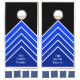 You'll be the envy of the neighborhood with this customizable blue, black, and white chevron striped cornhole set that is personalized with your family name. Use the "customize further" option to change the black background or the darker to lighter royal blue chevrons with white borders.