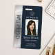 Easily personalize this professional luxury style silver and blue employee photo ID badge with your custom details.