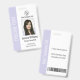 Bring a touch of modern color to your workplace with this pastel purple photo ID badge, designed for designers, artists, and innovative corporate staff. This vertical identification card features a soft lavender side banner that elegantly displays your department name in bold, white lettering. The template is fully customizable, allowing you to easily swap in a professional headshot, company logo, and staff details including ID numbers and expiration dates. With a functional back design featuring a scannable barcode and return address info, this badge combines trendy aesthetics with essential office security.