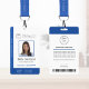 A modern blue business design that highlights your company logos and employee name. You can add a scan bar code on the back side. You can also change the color of the background as you need. Simple edit!