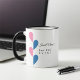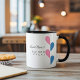 The custom coffee mug showcases pink and blue half hearts, along with up to four typography fields for names, titles, or messages. Currently, it displays "Best MOM Ever!" and "Best DAD Ever!" in an elegant and adorable design. This personalized mug is a perfect and thoughtful gift for coffee lovers, especially parents, grandparents, newlyweds, or couples celebrating anniversaries or special occasions.