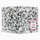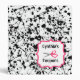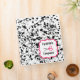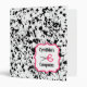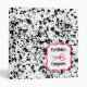 A coupon organizer binder featuring a black paint splatter design covering entire outside surface. Personalize with your name above scissors illustration inside pink frame on front.
