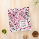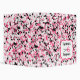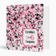 A coupon organizer binder featuring a pink and black paint splatter design covering entire outside surface. Personalize with your name above scissors illustration inside pink frame on front.
