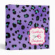 A coupon organizer binder featuring a purple leopard design covering entire outside surface. Personalize with your name above scissors illustration inside pink frame on front.