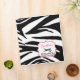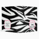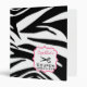 A coupon organizer binder featuring a zebra print design covering entire outside surface. Personalize with your name above scissors illustration inside pink frame on front. Personalize with "If Found" info on back.