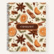 Bring warmth and seasonal charm to your notes with this personalized cozy spice notebook. Featuring a hand-drawn pattern of dried oranges, cinnamon sticks, pine sprigs, and star anise, it’s perfect for journaling, recipes, planning, or gifting. Add a name for a thoughtful and stylish touch that makes writing even more enjoyable.