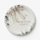 Personalized Cream White Hydrangea Bridal Shower paper plate. Elegant. Tying the Knot. Bow. Brown text.