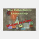 A creepy laboratory, the home of the mad scientist. This unique doormat can be personalized for anyone who loves to decorate for halloween. Original vector art by Night Owl's Menagerie, c.2015.