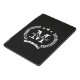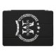 Personalized crest Apple 10.5 iPad Pro Smart Cover. Custom Birthday gift idea for him or her. Black and white colors. Vintage name logo with laurel wreath symbol. Personalizable computer accessories for home or office. Auto screen off function.
