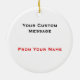 Lightweight, smooth, pure white ornament with nice sheen. Perfect size to be seen from across the room ... and to attract closer inspection! Price was great for ordering enough for the whole family! Clear, bold black design just as requested. Matches the order exactly. Just so nice!