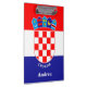 This personalized clipboard features the flag of Croatia with the coat of arms, and customizable name of the country and additional text (name) in white font, placed at the bottom.