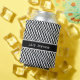 Add your name, or that of a friend, to the editable region of this template for a fun, unique gift. If you want to stop there, you may. Alternately you can click "customize" and change your font, or even re-position the personalized element in this design. // Your personal details appear over a white-bordered-black-band. Under that, and covering the entire surface of the design, is a curvy, vertical black and white pattern with a retro vibe.