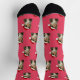Bring the holiday cheer to life with this adorable calico kitty Christmas pattern! This kitty wears a classic red Santa hat, creating a fun and festive repeating design over a cheerful background. These socks are perfect for cat lovers or anyone who enjoys playful holiday art.