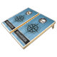 Personalized Custom Compass on Blue Wood, Silver Cornhole Set