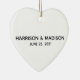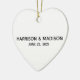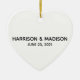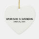 Personalized Custom Couple Name and Date Wedding Heart Ceramic Ornament.