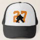 get your hockey goalie number on a trucker hat in orange and black