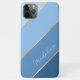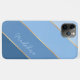 Contemporary pastel, light, medium, and dark classic blue-colored striped cell phone case. With room to customize with a name, monogram, or initials of your choice. Beautiful, modern, and cool cover for the trend-savvy and art-loving hip trendsetter, artsy motif lover who wants to protect their phone from dust and dirt, wear and tear. This design is available in Apple iPhone 6, 7, and 8 Plus, 10 or X, XR, XS, 11, 12, 13 Mini, 14, 15 Plus and Pro Max cellphone cases. Show off your style, look fashionable, and feel stylish with a unique design on a mobile device accessory of your choice.