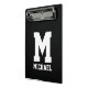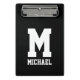 Personalized custom monogram name initial sports Mini Clipboard. Personalized Birthday gift for sports coach, personal trainer, fitness instructor, friend, mom, dad, boss, coworker, employee, teacher, office worker etc. Sporty typography design with name and initial letter. Black and white or custom colors. Double sided print. Handy for making notes, keeping score and more. Use in football, baseball, basketball, soccer, tennis, golf, volleyball, hockey, fitness and other team sports.